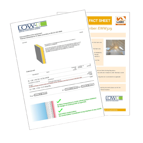 Low E Insulation TAB is pre-cut to specific widths (400mm or 600mm) for your convenience to neatly fit between rafters, studs, and joists. TAB is ideal for use in barn conversions, crawl spaces and basements where overlaying insulation is not possible.